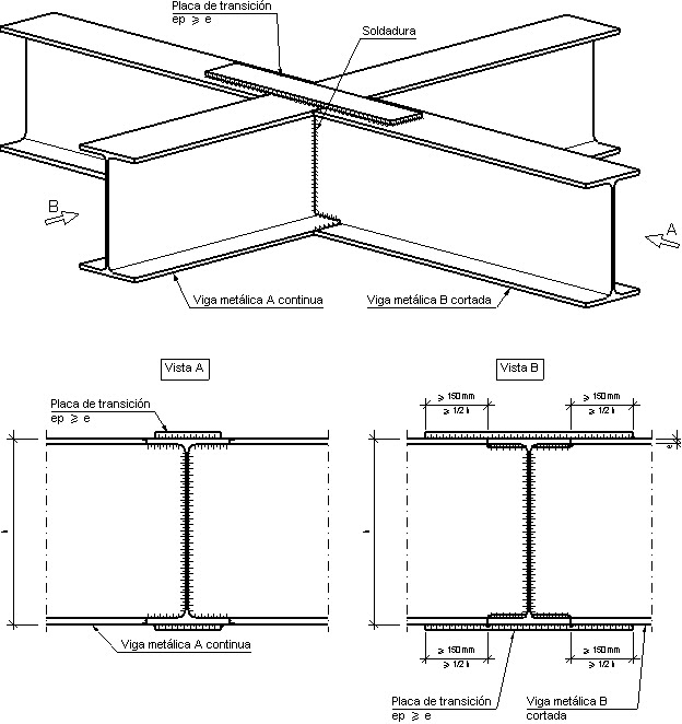 Apeo de vigas de diferente inercia mediante cordones de soldadura.